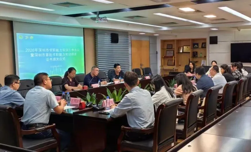 为深入贯彻落实党中央、国务院关于促进高质量充分就业的决策部署,全面推进青年求职能力实训营建设,强化实训师资队伍专业化、规范化发展,4月2日下午,2026年深圳市求职能力实训工作会议暨深圳市首批求职能力实训师资证书颁发仪式在深圳市公共就业服务中心7楼大会议室顺利召开。