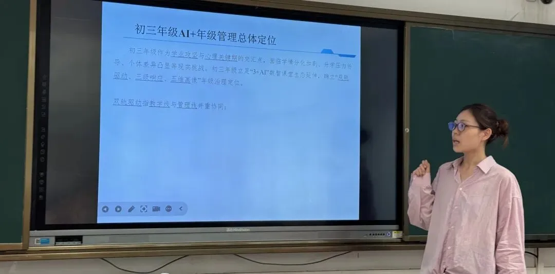 九年级韩琦燃级长结合毕业班育人特点,分享了 AI 助力学生发展与过程管理的创新思路。强调利用智能工具精准分析学生成长数据,辅助分层教学与个性化指导,为学生全面而有个性的发展保驾护航,彰显了教育的温度与精度。