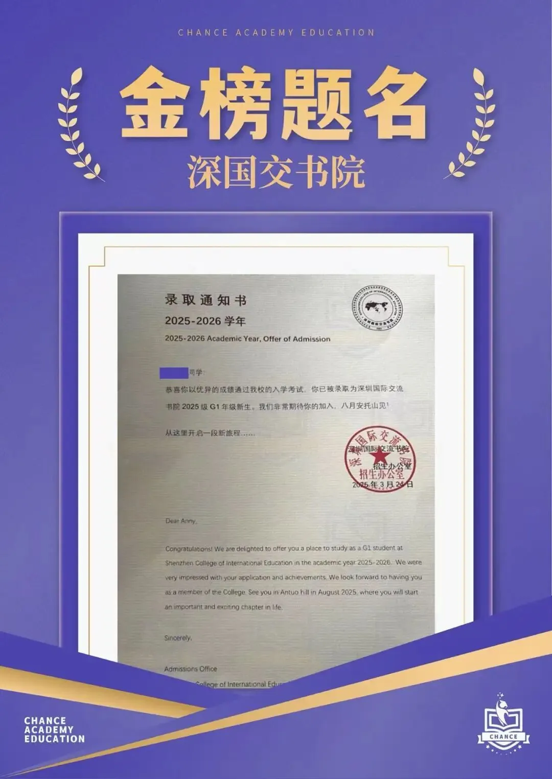 升学成果:2024年,收获了100%被美国前30、英国G5、“港前三”录取的佳绩;2025年,揽获三封剑桥大学录取(面邀100%录取),位居深圳Top2。