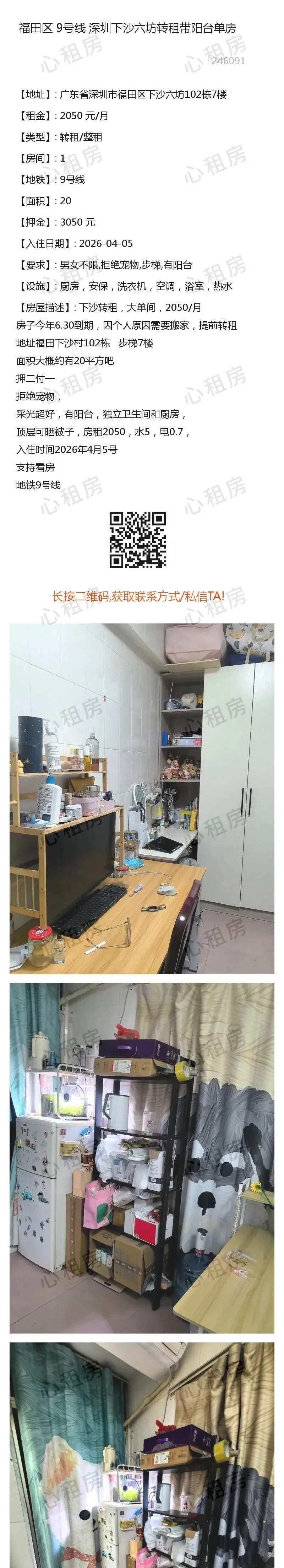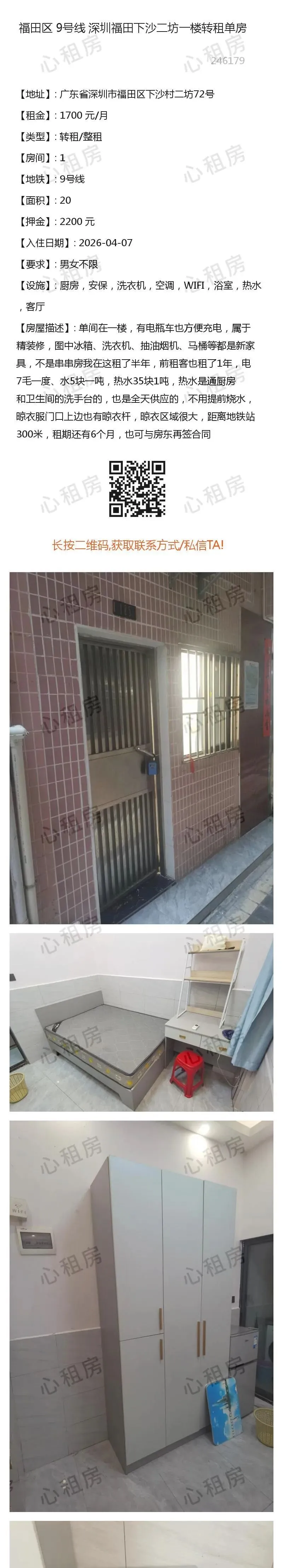 深圳租房【福田2则】房源①:9号线深圳福田下沙二坊一楼转租单房1700元/月;房源②:.........