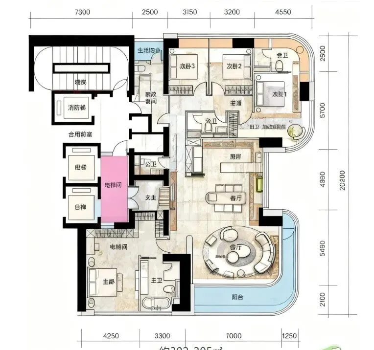 302㎡为项目稀缺主力户型,3梯2户、圈层纯粹,前批次开盘即售磬
