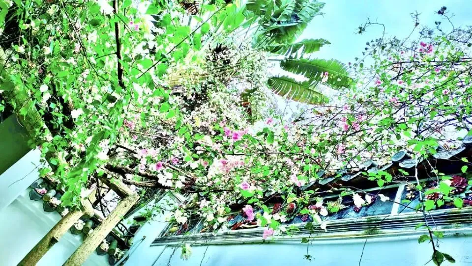 车子缓缓开动,有些是我们没走过的路段——原来还有这么多角落,藏在拐弯处。穿过一条地下通道,两侧的墙上贴满了照片:汇芳园的繁花、凝翠园的幽径、童乐园的滑梯、客家新居的瓦檐、粤清园的月洞门……