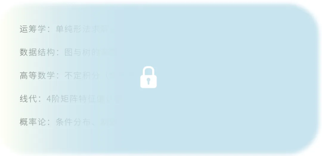 数学模块要展开系统性刷题训练,全面覆盖考试核心考点与各类经典题型。建议学弟学妹们通过足量练习夯实基础,熟练解题思路,提升答题准确率和速度。
