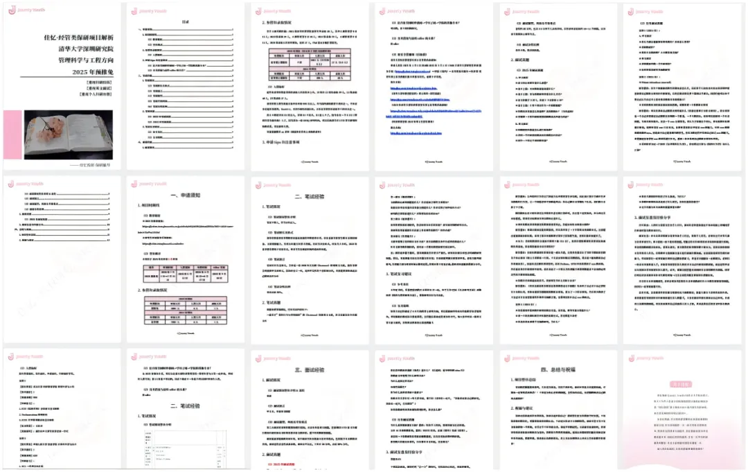 该份清华大学深圳研究院管理科学与工程方向项目书包含项目时间线、参营和录取情况、考核流程、笔面试经验、笔面试真题、复习建议、参考资料清单,合计18页,覆盖该项目保研的全部流程经验与注意事项。