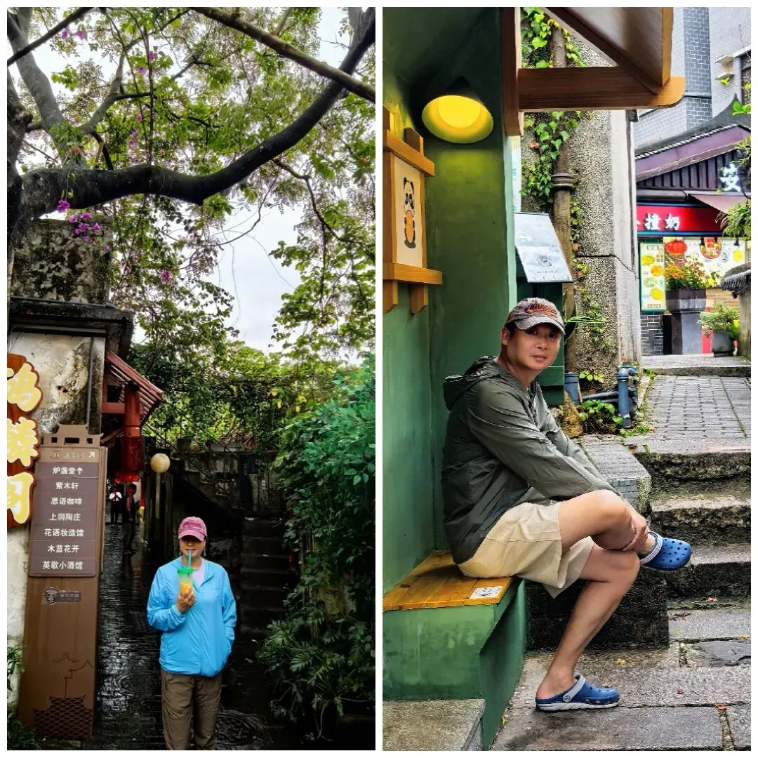 雨大时,我们躲进了甘坑客家小镇。这里像是深圳快节奏里的一个“暂停键”,依山傍水的建筑群在烟雨中竟有几分江南水乡的错觉。走在青石板路上,看屋檐滴雨,仿佛穿越回了百年前的“世外桃源”。虽然商业化不可避免,但那份藏在都市褶皱里的客家风情,还是让人在湿冷的天气里感到一丝温润。