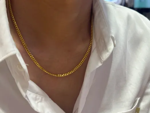可金子跟心情不一样,它有秤。店员把我的项链放上去,报了个克重,我整个人先愣住,再低头细看,才发现这款中间是空心的小圆管,扣头还挺花哨。买的时候我觉得轻盈不压脖子挺好,现在一卖才懂,轻盈意味着克重不占优势,溢价却不轻。店员人很礼貌,跟我解释了回收只看克重和成色,设计不值钱,工费也回不来。我就那种“懂的都懂”的窘迫感刷地一下上来,只能坐在小凳子上深呼吸。他给我试了几条素链让我对比,足金那种软糯的光泽还是耐看,K金的冷调更利落,搭白T也好看,但我当时那条,确实更像“看着贵”的那种。