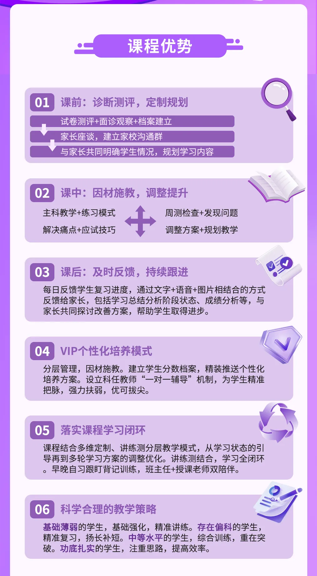 中高考冲刺阶段,很多孩子明明很努力,成绩却迟迟上不去 —— 基础薄弱找不到突破口,偏科严重顾此失彼,学习动力不足、状态起伏,甚至复习方向偏离考情,白白浪费黄金备考时间。同样在备考,为什么有的孩子稳步提升,有的却原地踏步? 核心原因不是不够努力,而是缺少科学、闭环、可落地的备考体系。雅德深圳中高考全日制课程,从入学测评到最终录取,全流程精细化管理,让每一分钟学习都用在提分点上,真正实现高效冲刺、稳步上岸。雅德中高考全日制课程,精准解决考生备考痛点,助力高效提分、顺利上岸。课程以“精准、高效、贴心”为核心,涵盖学情诊断、个性化规划、靶向教学、全程督学及升学指导等全流程服务。中高考备考,拼的不是学习时长,而是 精准度与效率 。雅德全日制五大核心优势,直击考生备考痛点,让提分看得见、摸得着。Step1 入学诊断全面分析考情与个人学习现状,找出知识漏洞、习惯问题、目标差距,让备考不再盲目。根据测评结果划分薄弱项,制定分层教学计划与阶段性提分目标,一步一个台阶提升。✅ 帮孩子:针对性补强,快速缩小差距,成绩稳步进阶。依据孩子性格、薄弱科目、学习习惯,匹配最适合的授课老师,教得对路、学得进去。✅ 帮孩子:课堂效率更高,知识吸收更快,提升更明显。老师紧扣考点教学,重点补短板、攻易错点,用最少时间拿到最多分数。✅ 帮孩子:抓准考点、高效补漏,应试能力全面提升。Step5 闭环督学管控课前规划、课中盯学、课后复盘,心理状态同步疏导,保持最佳备考节奏。✅ 帮孩子:专注学习、稳住心态、落实每一天的提升。结合成绩与院校数据,一对一规划志愿,降低填报失误,助力考上理想学校。✅ 帮孩子:信息不迷路、填报不踩坑,稳妥录取心仪院校。中高考是孩子人生关键一步,家长的选择,往往决定孩子的备考效率与最终结果。 雅德深圳中高考全日制 ,立足深圳本地考情,用专业体系、专属师资、全程陪伴,让孩子每一份努力都有回报,每一步提升都看得见,全力冲刺理想院校!深圳各大校区可就近预约体验,欢迎家长带孩子到校咨询测评!🔴如何免费领取资料?🔴