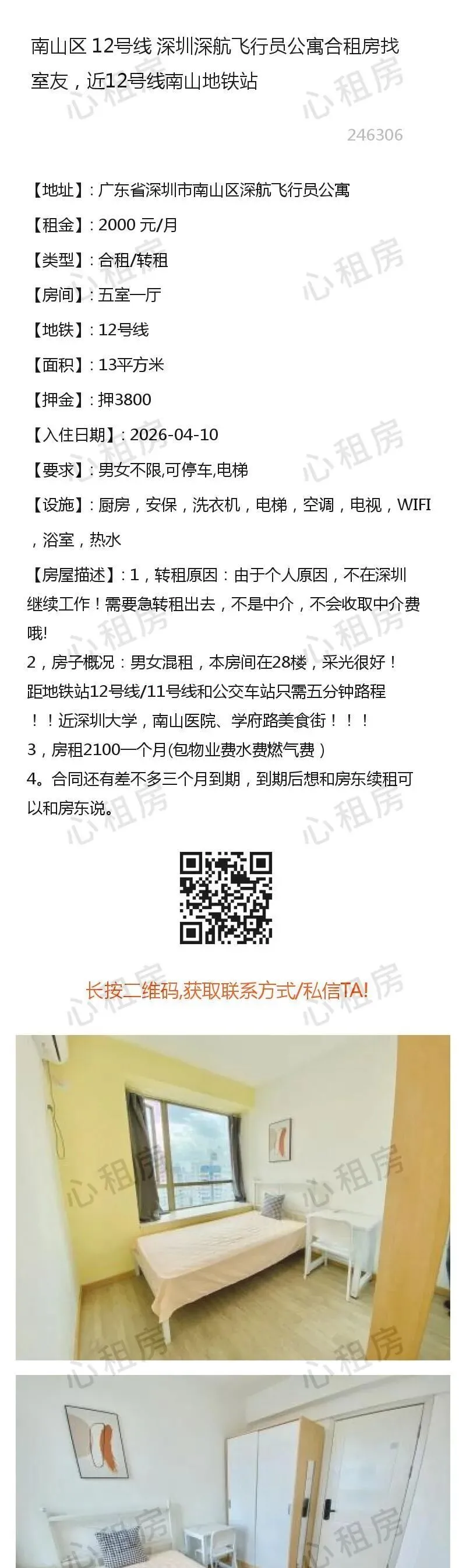 深圳租房黑房东找房子罗湖合找室友合租短租深租房科技园深大豆瓣南山租房地铁租房龙华新福田罗湖光明新区坪山新区大鹏南山豆瓣1、所有房源信息均由网友投稿,委托本公众号/心租房(homhere.cn)发布,房源的真实性、合法性由提供者负责。2、请务必核实双方身份信息(身份证)、房产权属(产权证明)、转租权利(租赁合同)等基本信息。3、请务必实地考察房源并确保与出租方提供的基本信息一致。4、切勿轻易支付定金、保证金、打赏等,建议签订《租赁合同》后再进行交易。5、双方在房屋租赁过程中产生的一切纠纷,均与本公众号/心租房(homhere.cn)无关。6、近期欺诈团伙在境外以相亲交友、租房、国际包裹等名义实施杀猪盘、诱导下载未知app等进行刷单返利等欺诈的行为较多,请先确认对方身份,保护个人隐私和财产安全。
