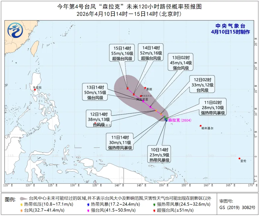 预计,“森拉克”先将原地少动,而后向西北方向移动,强度逐渐加强,13日夜间逐渐靠近美国关岛附近洋面。预计最强可达强台风级或超强台风级(50-55米/秒,15-16级)。未来“森拉克”对我国近海无影响。据深圳气象部门目前研判,未来进入南海可能性低,对深圳市无直接影响。