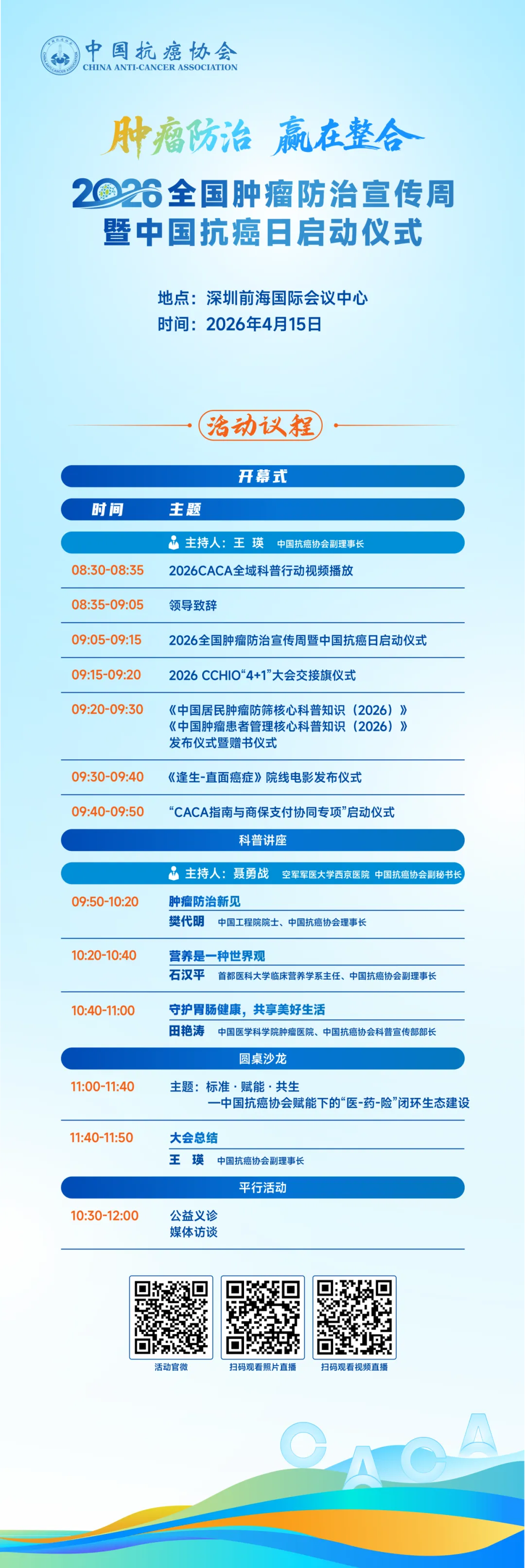 好消息!全国肿瘤患者期待已久的2026 全国肿瘤防治宣传周暨中国抗癌日正式落地深圳!