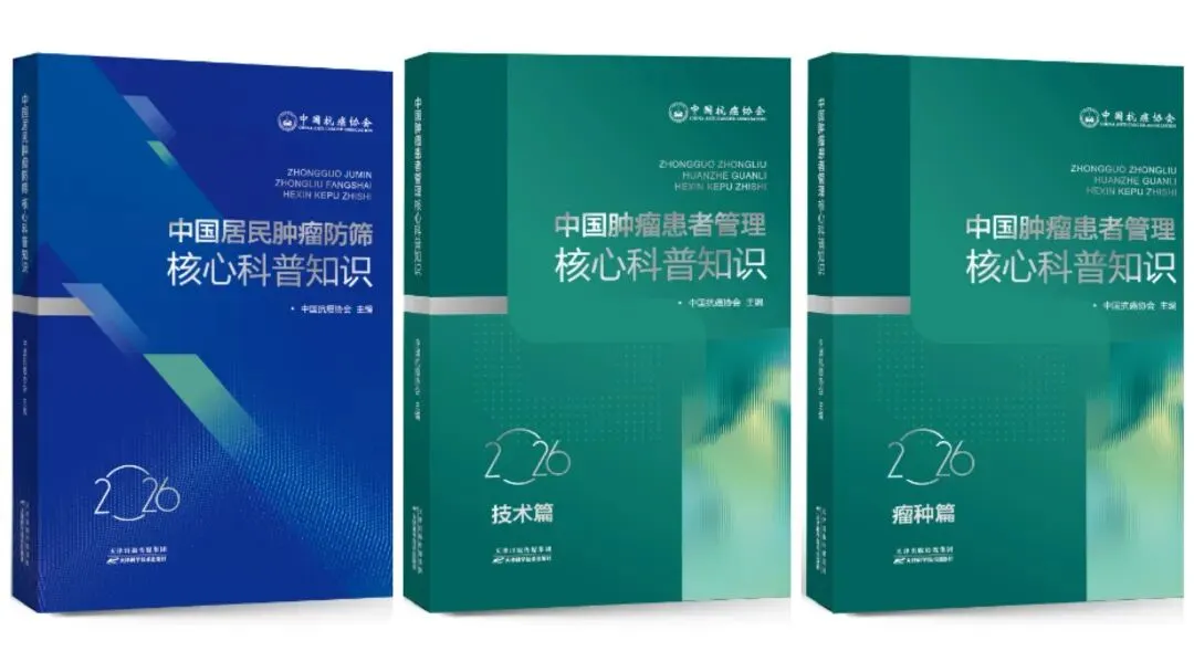 为落实《健康中国行动——癌症防治行动实施方案(2023—2030年)》“2030年癌症防治核心知识知晓率达到80%以上”目标,中国抗癌协会依托CACA指南,组织全国顶尖专家精心编撰的《中国居民肿瘤防筛核心科普知识(2026)》《中国肿瘤患者管理核心科普知识(2026)》正式发布。丛书得到国家癌症中心早诊早治办公室、中国疾控中心慢病中心、中国科技发展基金会大力支持。