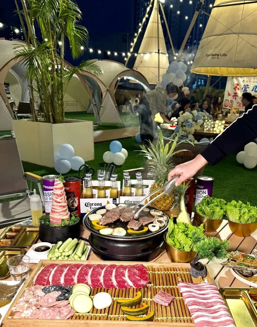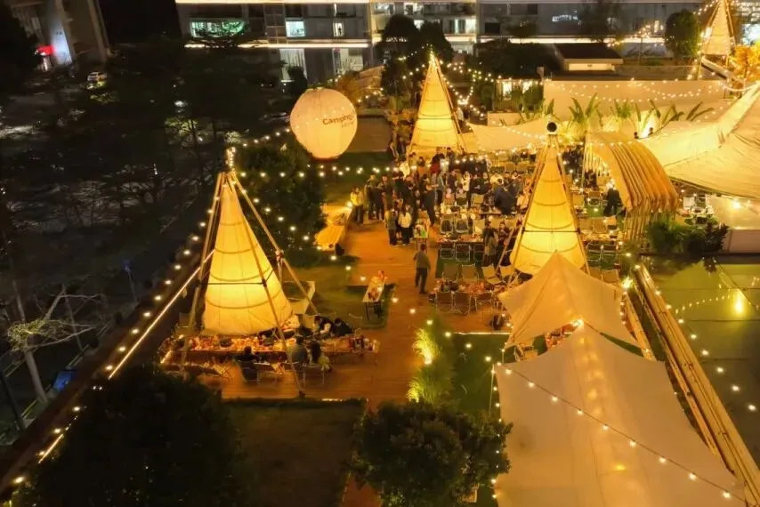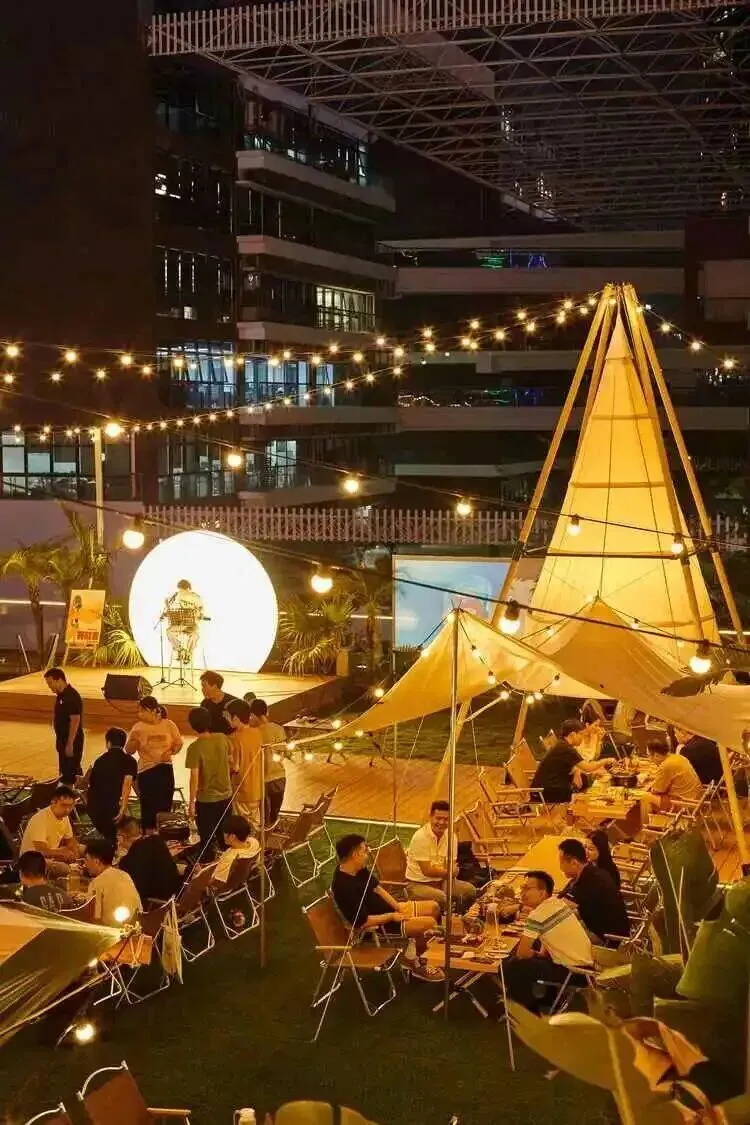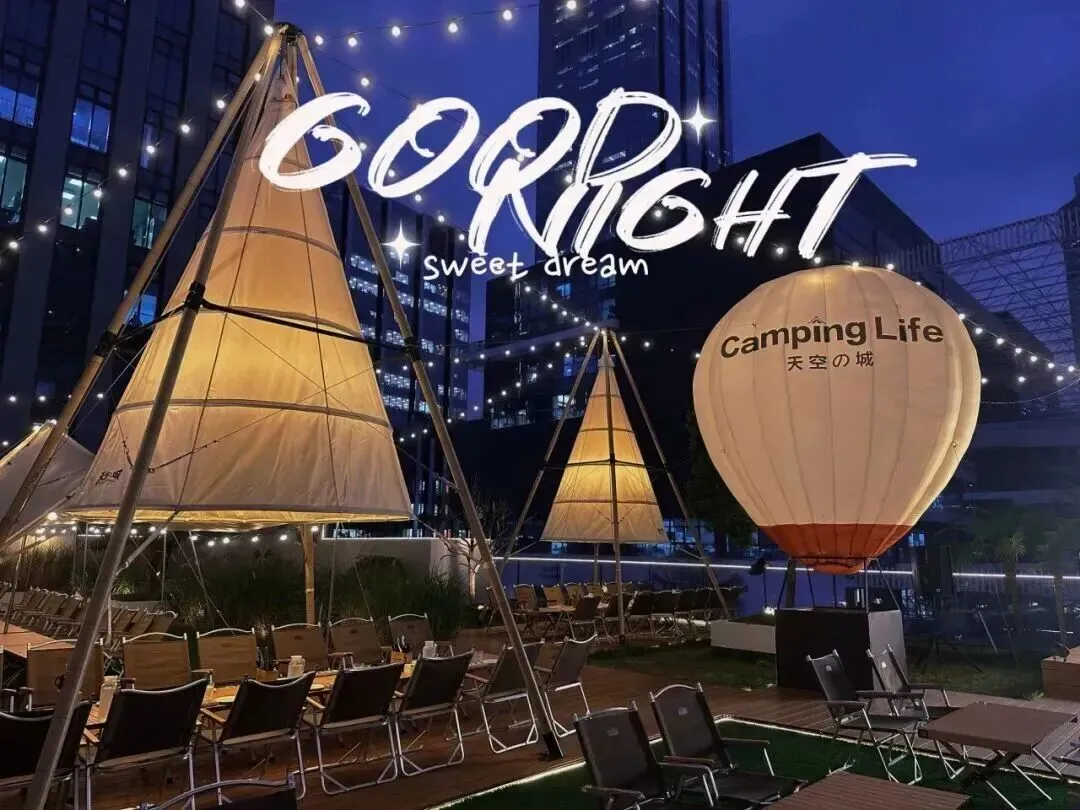我们把露营搬到了城市上空,天幕、星星灯、音乐、烤肉、桌游、草坪椅...