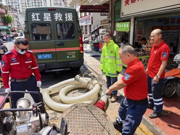 3月30日,根据水务部门防汛工作部署,结合天气预警,市红星应急救援队赶赴南头街道一甲村排查内涝情况,携带排涝设备开展防汛备勤。
