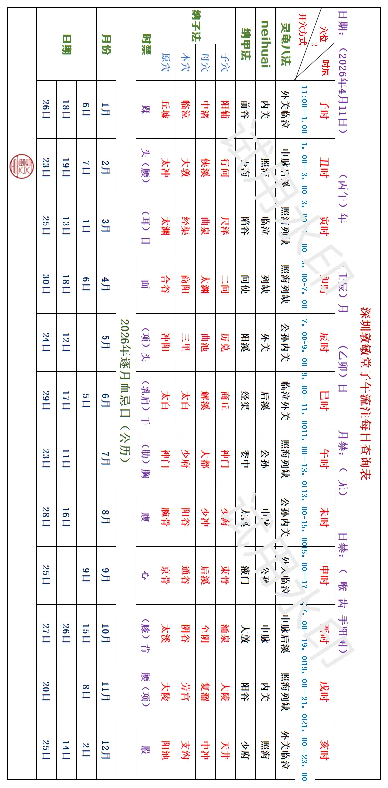 深圳敦敏堂《子午流注:今日开穴》 2026 4月11日