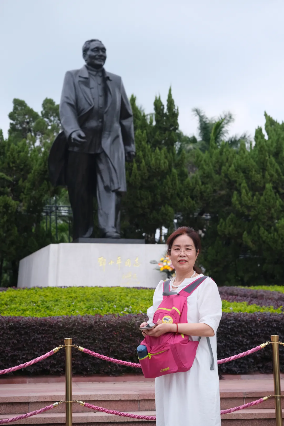 第三天一大早,我们就去了莲花山,登上山顶瞻仰邓小平同志的塑像。看着那句“时间就是金钱,效率就是生命”的题词,站在那儿,真能感受到深圳这座城市崛起的底气和精神,心里特别震撼。我们也在这儿认真拍照留念。