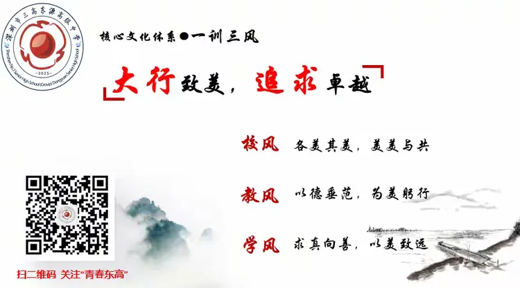 领导寄语,共期美好未来:刘瑞清校长代表深圳市三高东源高级中学对深三高的热情接待表示衷心感谢。刘校长指出,深三高在课程体系构建与校园文化建设方面的先进经验非常值得我校借鉴,希望我校能以此为契机,进一步加强沟通,深化帮扶合作,将今天学到的宝贵经验带回东源,落实到我校的教育教学改革中。