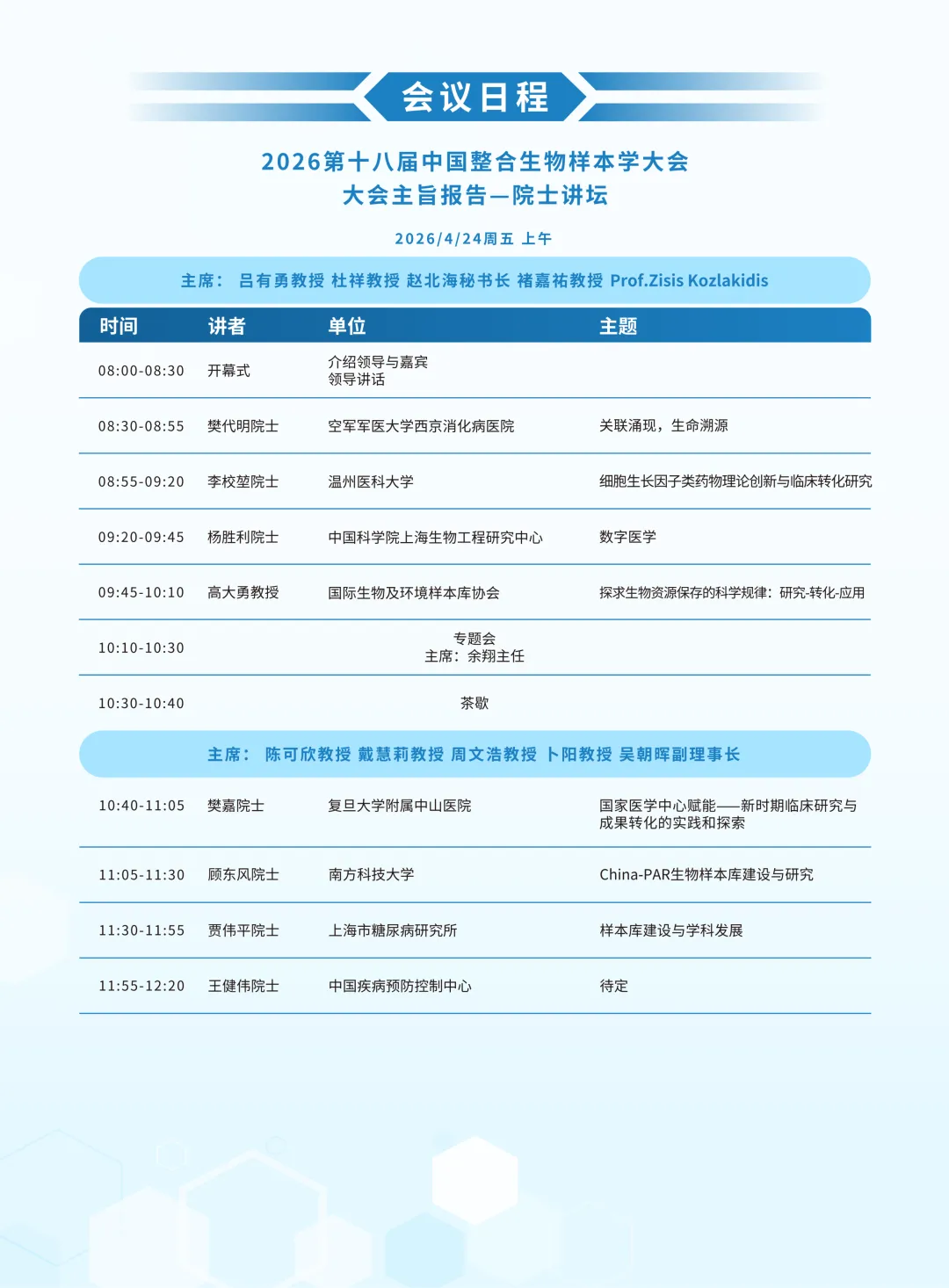 2026第十八届中国整合生物样本学大会暨第十三届中国生物样本库院长论坛将于2026年4月23日-4月25日在广东·深圳隆重召开。