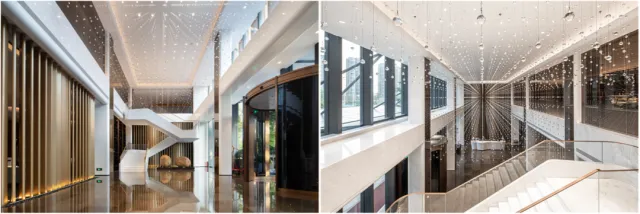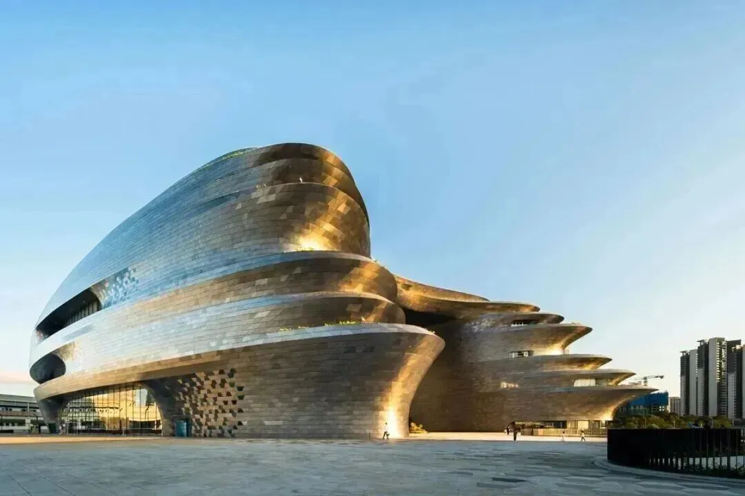 那艘极具未来感的“大飞船”本身即是一件巨型展品。由9万余块不锈钢面板拼接而成的立面幕墙,在阳光下折射出极光与星云般的光影,天然形成网红“打卡点”。
