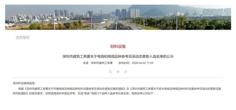 产品入选标志着坚宝电缆在质量管控、技术水平、综合服务等方面获得政府权威机构的充分认可,同时正式具备参与深圳市政府投资重大工程项目的供应资格。