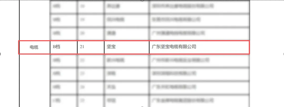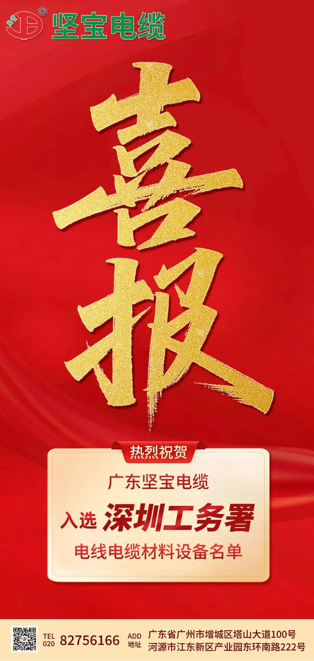 热烈祝贺广东坚宝电缆有限公司入围深圳市建筑工务署《电线及电缆品种材料设备入选名单》。