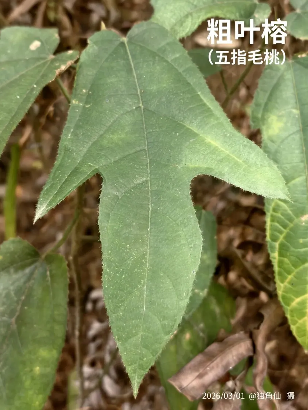 叶片的质感,也常成为植物命名的灵感。一些叶片粗糙的植物,名字里往往带有“粗叶”二字,如本次专题活动记录到的粗叶榕(五指毛桃)、粗叶悬钩子。