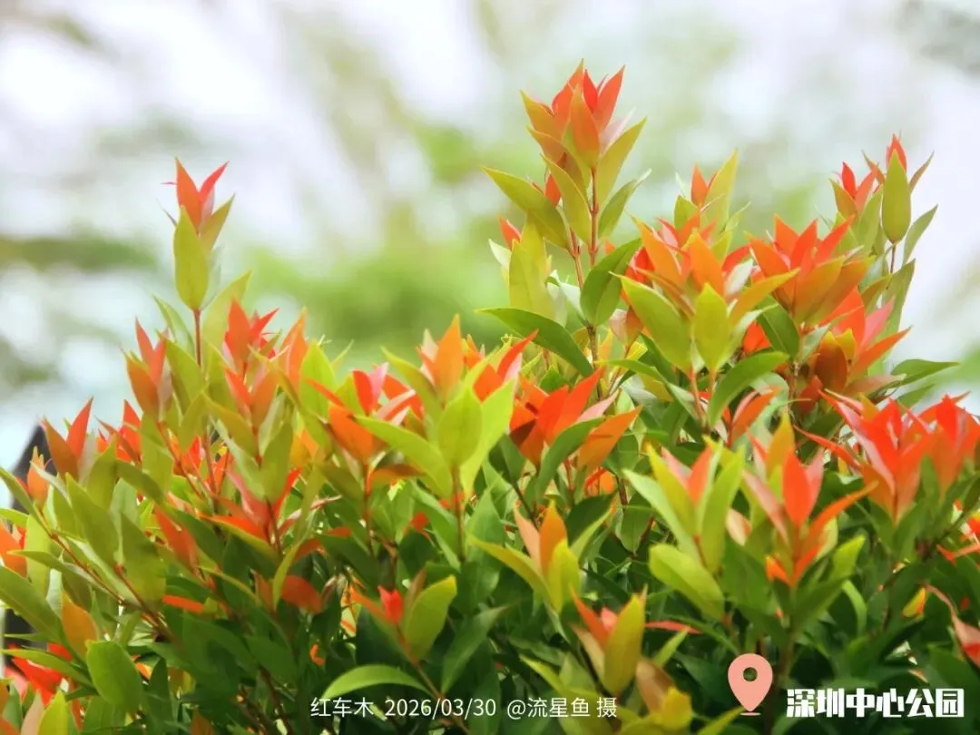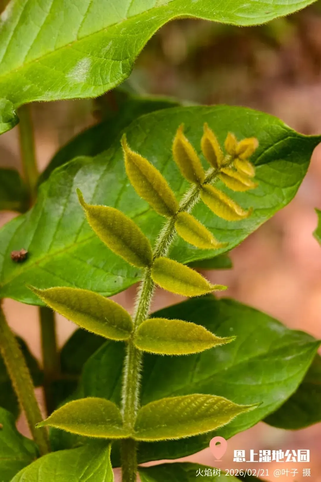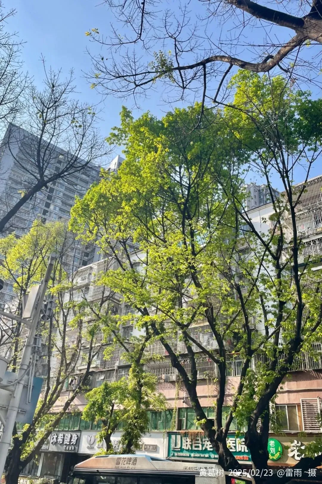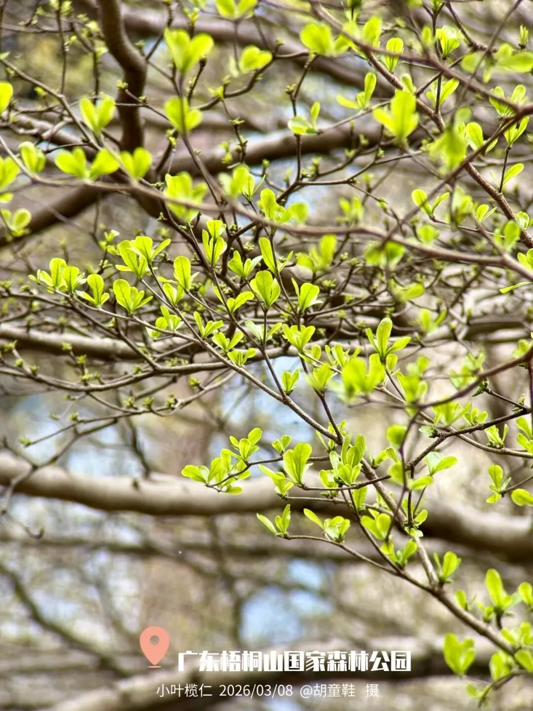 小叶榄仁是深圳极具代表性的行道树之一,伞状枝干层层舒展,挺拔而有序。初春时节,枝头缀满星星点点的嫩绿,洋溢着春的生机。本次春叶专题中,小叶榄仁记录数量排名第一,当之无愧为深圳人眼中最动人的春日叶景。