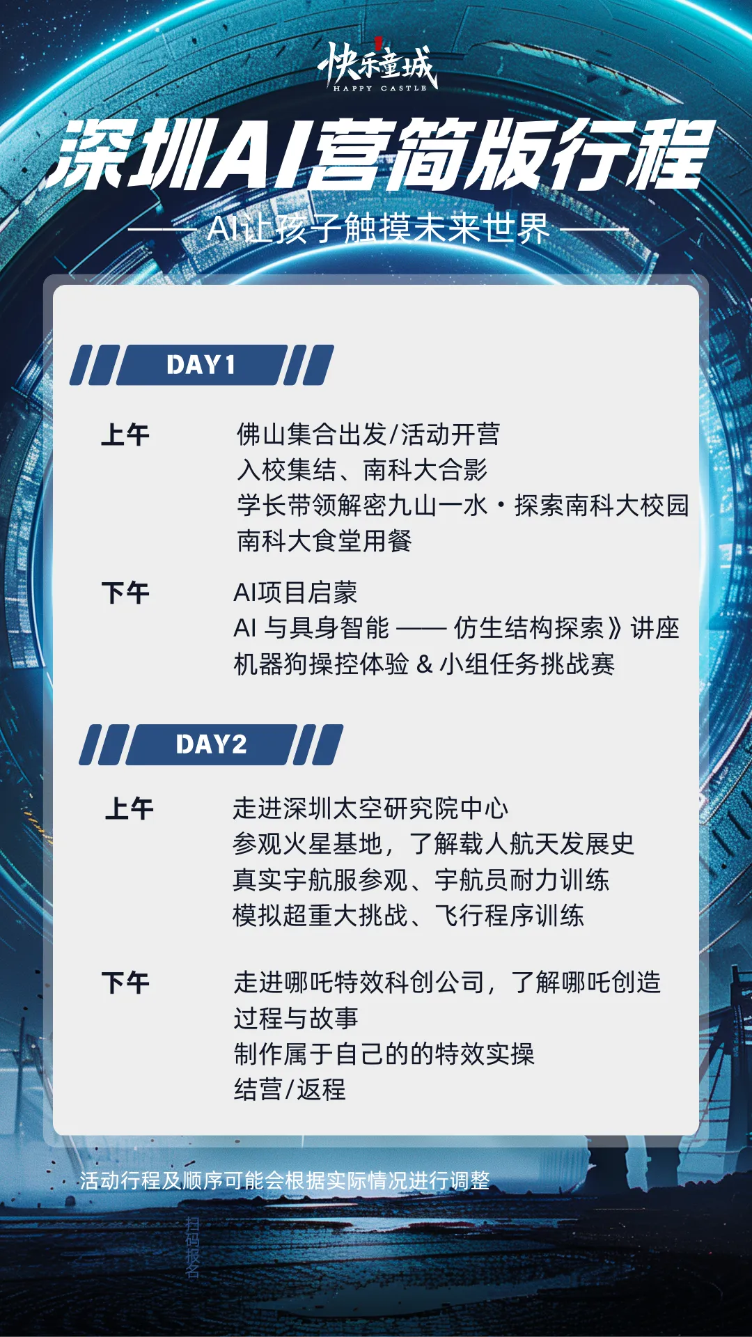 4.5-6 春假出发!最后2个位!【深圳Ai科技】2日营!佛山出发2天1晚,走进南科大 + 航天研究院 + 哪吒特效厂,解锁 AI 科创天花板!