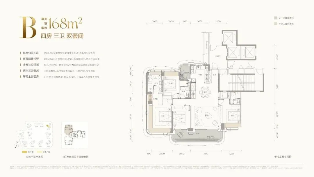 “一心十岛”布局,3层架空抬高立体浮岛社区,三层垂直园林,户均约40平的服务配套,约3000平双下沉会所,三重归家礼序,9米挑高车门厅,都将刷新深圳人居典范。