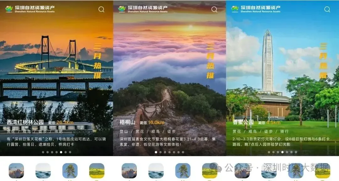 同时,该应用保持动态更新,实时跟踪保护地人流量、热门时段、服务质量等。每月按季节时令推荐特色生态产品,实现“四时风光按月推送,深圳之美永不错过”。