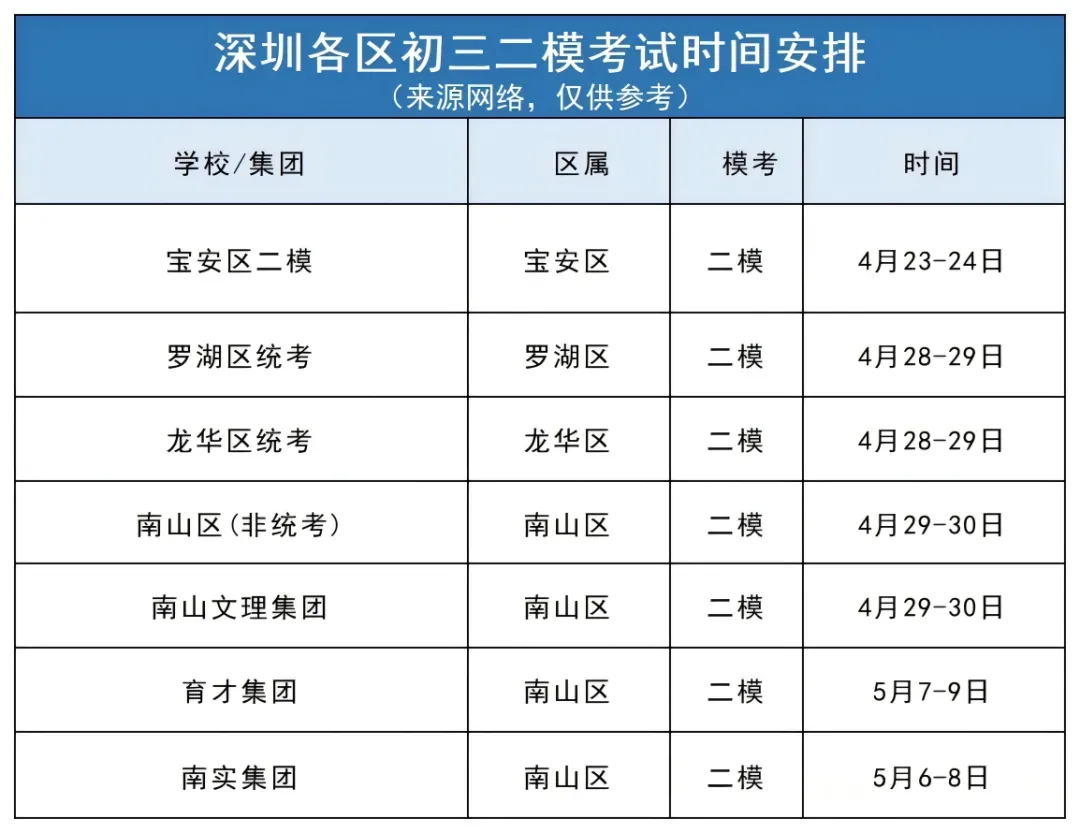 当前位置:首页>深圳>定了!深圳福田南山罗湖等多区初一初二期中考试及初三二模时间公布!