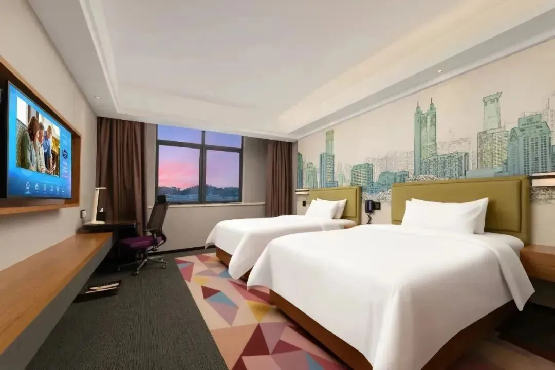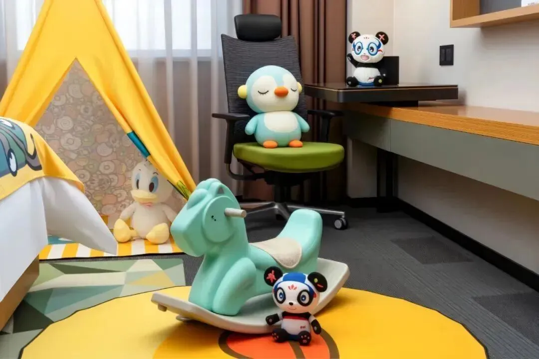 酒店主楼高16层,拥有百余间宽敞舒适的客房,服务高效、便捷,是商务办公、出行旅游的上选。酒店配套温馨舒适的客房、功能齐全的会议室、乐动健身房以及健康格调的餐厅。进入大门之后,是功能齐全的大堂。里面不仅有休息区和餐厅,还相应地配备有电脑、饮料柜等设施。大堂光线明亮,空间宽敞。配备有若干相对独立的沙发和休息区,不仅能保证用户的休息体验,也能相对提供具有一定隐私性的休息氛围。本次套餐内的房型为舒适大床房/舒适双床房。房间在设计上非常具有现代感,色彩的搭配充满了活力,却又兼顾了简洁和清爽。房内设施一应俱全,不论是电视、热水壶,还是风筒、台灯,全部都精心准备好,满足您的出行需求。酒店每间客房均配备美国Hampton Bed®标准Serta双专利床垫和生态认证床上用品,优质的床上用品将为您打造云端甜梦体验。亲子主题房专门为一家人出行而设计,里面配备有孩子们喜欢的各种玩具、玩偶,以及小帐篷。这些可爱的玩偶可以为孩子们的旅途带来更多的乐趣。除了哆啦A梦主题房,酒店还精心配备了不同的主题,以满足孩子们不同的喜好。有的套房还配备了可爱的木马玩具,这能让孩子们在房间内也不感到无聊。