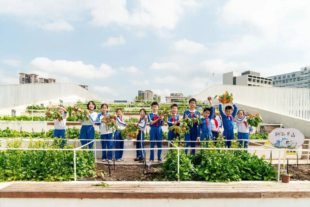 平山学校将上千平方米闲置天台改造为“耕云平山”无界农场,以物联网智能灌溉实现四季轮作,不仅破解了都市校园劳动教育场地短缺的难题,为孩子们的成长注入自然与劳动的力量,更为超大型城市校园空间活化、素质教育落地提供了充满绿意的“南山方案”。