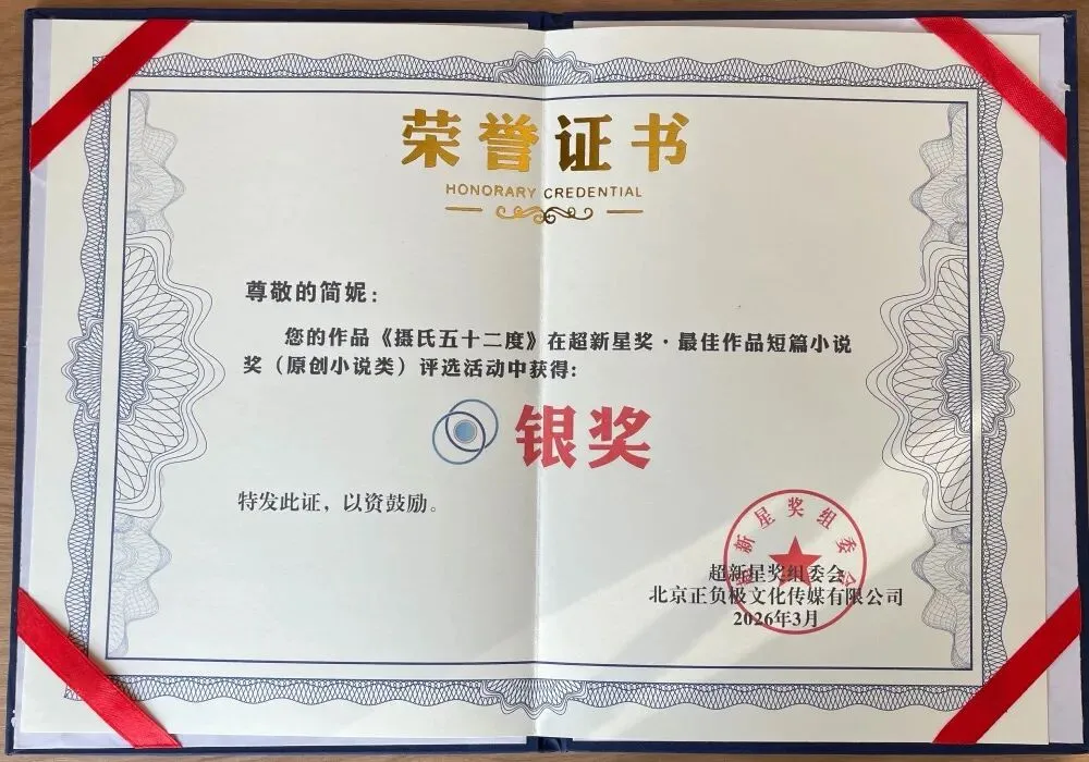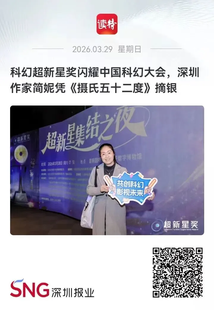 深圳科幻作家简妮的《摄氏五十二度》荣获首届超新星奖·原创最佳作品短篇小说银奖。这是一个有关近未来极端天气的短篇科幻小说。嘉陵江的水一夜之间不翼而飞,在摄氏五十二度的环境下,人与人之间的友情、亲情将面临怎样的考验?在本文里可以看到酷热天气对人心影响的具体呈现,也能看到希望与救赎。