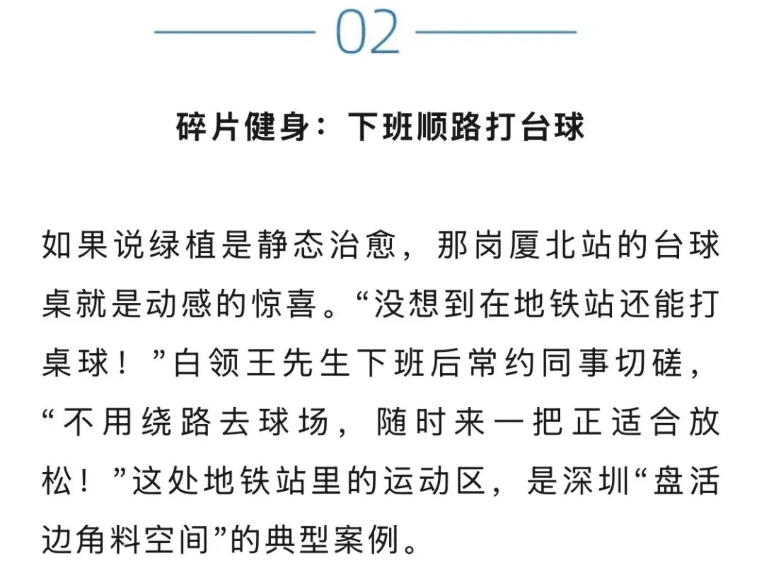 2025年央视曾关注过的黄木岗运动馆,以及利用地铁检修库屋顶改建的长圳运动中心,如今也成了市民“随心所动”的好去处。“碎片化健身”的理念,正随着运动场地的丰富日益深入人心。