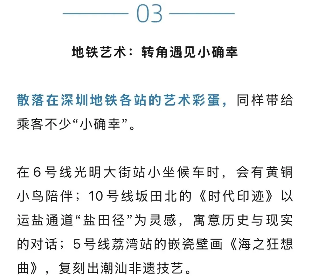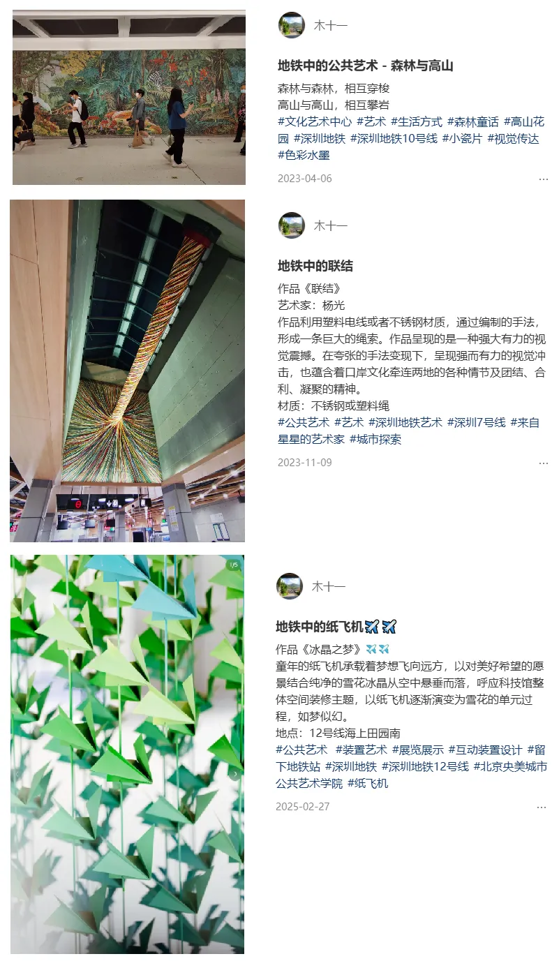 网友“木十一”通过坚持三年的记录,表达了自己对深圳地铁艺术的喜爱,在其看来,这些装置既是装饰,也是无声的情感纽带,于无形中播撒美与爱的种子。