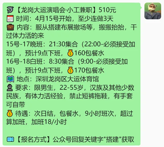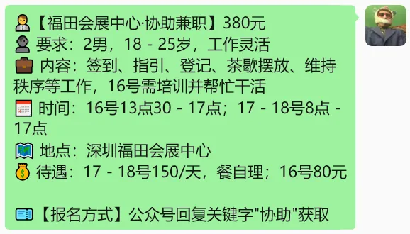 深圳兼职|4月12日 打包协助300元/回收协助260元/影院协助260元/地推协助200元/ 摊位协助170元/点击查看更多岗位