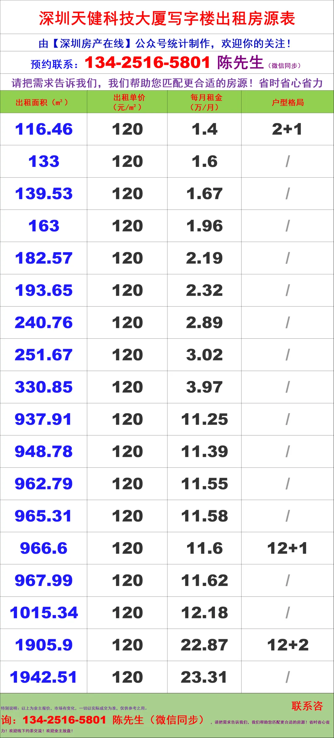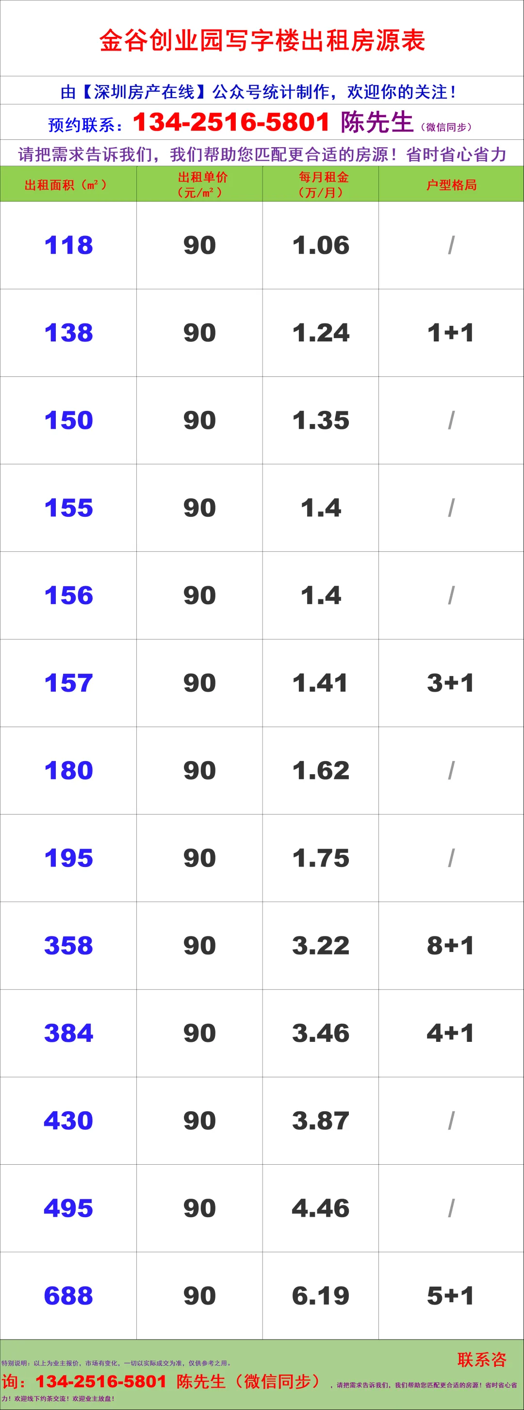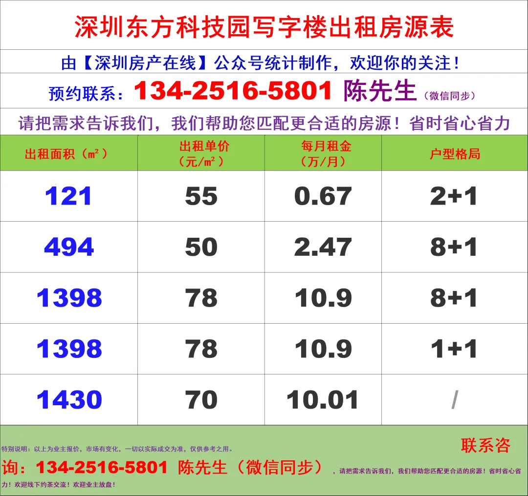 【深圳房产在线】陈经理写字楼租售团队:134-2516-5801 (微信同步)