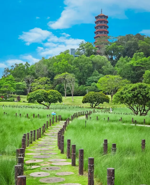深圳周末找不挤的地方很难,莲花山的草坪坐满了人,深圳湾的栈道转不开身,很多网红公园拍照要排队,光明有一个公园人很少,