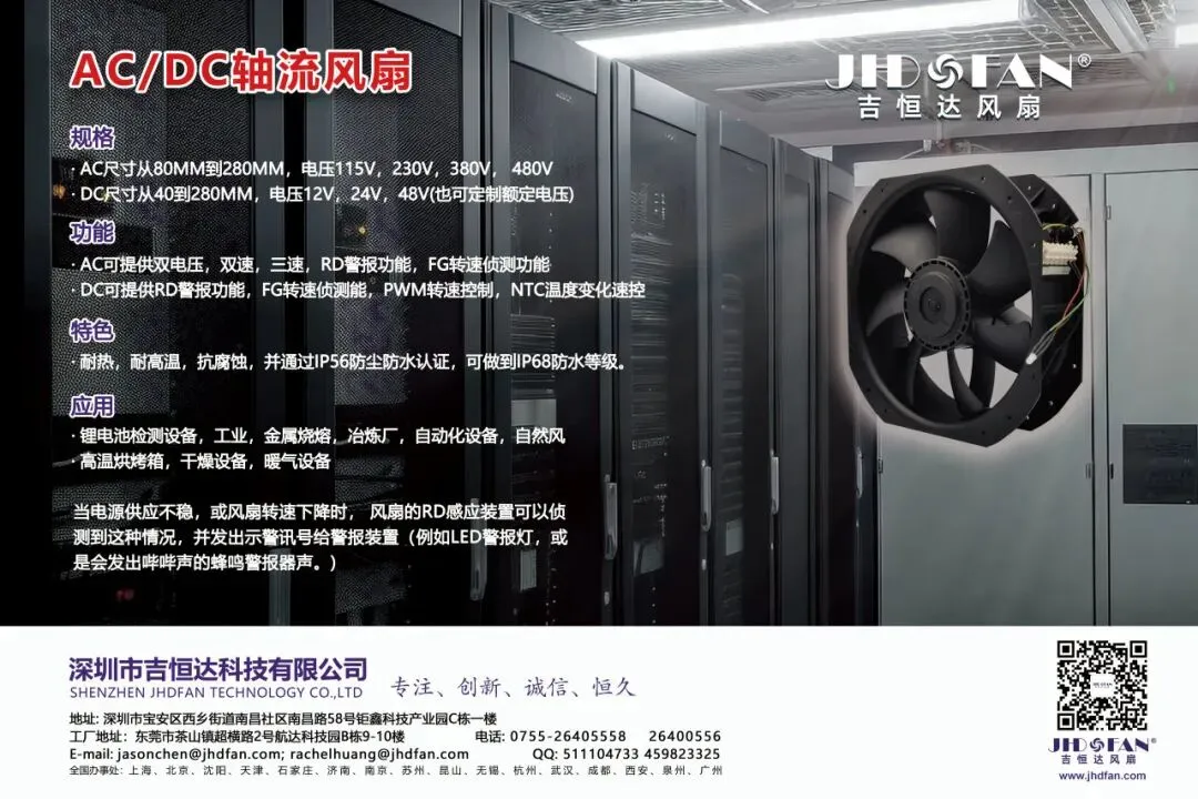 本届展会我司将隆重推出应用在新能源汽车充电桩、锂电生产设备、光储充检测设备、电源模块、伺服驱动器&电机、变频器、通信电源、逆变电源、UPS不间断电源、自动化生产设备、电气控制柜、半导体设备、激光焊接设备、医疗设备、AI数据中心......等等行业使用的全系列防尘、防水、防腐蚀、耐高低温环境的长寿命DC、AC、EC全系列散热风扇、防爆风机。
