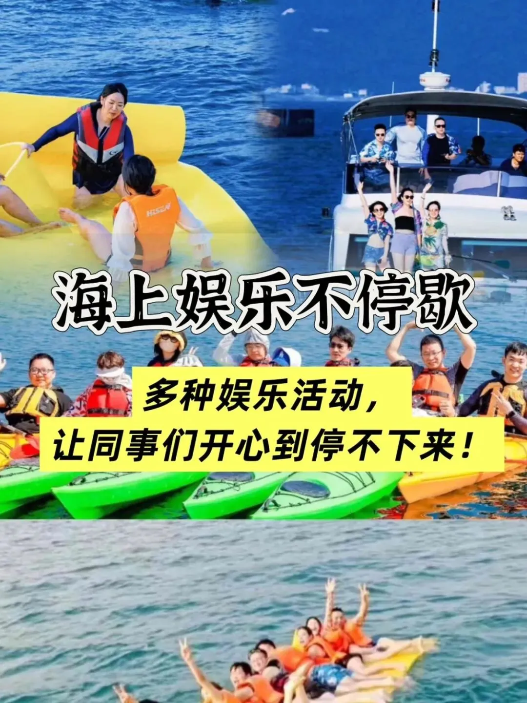 • 水上狂欢:入海滑梯、水上魔毯、浮潜装备全配齐,同事们像孩子般嬉闹,瞬间拉近距离。