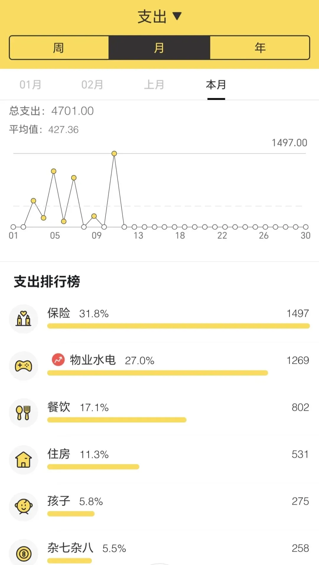 4.12号,本月未过半,除掉队友的花销,我和三个娃已花出去4700多了。昨晚我给自己+父母买了一份家庭保,我是投保人100元,父母60-65岁之间,每个人700元,保意外和重疾。家庭保,我家买了几年了,算是给自己买个心安吧!父母年龄大了,我又远在深圳,经不起折腾,算是兜底。保险这东西,不买吧觉得需要它,买吧一年要花出去不少钱,我家每年光保险费快10w了,买了保险不希望用到它,但一年期保险真没用到又觉得花了冤枉钱。这几年我对保险一直处于这种纠结状态,但每年还是乖乖续保🤣,好在不少保险买得早,已缴费10年多(过半了)我通常是两个月三个月缴纳一次物业费,不是往卡里存钱让自动扣,而是我手动用信用卡支付,这样可以用信用卡积分或微信立减金抵扣点钱,算是薅点羊毛省点钱。其中500是2和3月份,我和娃在单位食堂的餐费,剩余300多就是买菜+外出就餐的费用。以前我会每周带娃在外面吃一餐两餐,自从记账且复盘后,我只要有时间就在家做饭吃,在家做饭吃的干净又省钱,一大盘炒生菜才2块钱不到,要是出去吃,点盘青菜至少15元。我做饭,孩子们写作业,饭好了他们作业也写了几项了;要是在外面就餐,到家晚,作业一点没写,还花钱,得不偿失。自从减少外出就餐后,累是累了点,但每个月餐费肉眼可见地减少了!上图中的支出,我把房贷给剔除掉了,我家房贷每个月2w+,妥妥的固定支出,如果每个月都记它,压力一下子就上来了,我算是掩耳盗铃,眼不见为净。除此之外,还有买房欠钱要还的利息,这个也是每个月固定的负债支出。现在每个月辛苦赚钱攒钱就是为了早日还清房子方面的支出,按照还债计划,需要2年3年时间。比如,娃想买《福尔摩斯探案集》,正版一套很贵,我在闲鱼上不到50就淘到了;换季衣服和鞋子我只给娃准备2套,一概不多买乱买。娃越多,反而越好养,小孩子互相打闹互相陪伴,就连洗碗这件小事我都有三个帮手每周轮流洗🤣2026,愿更多财富流向你!