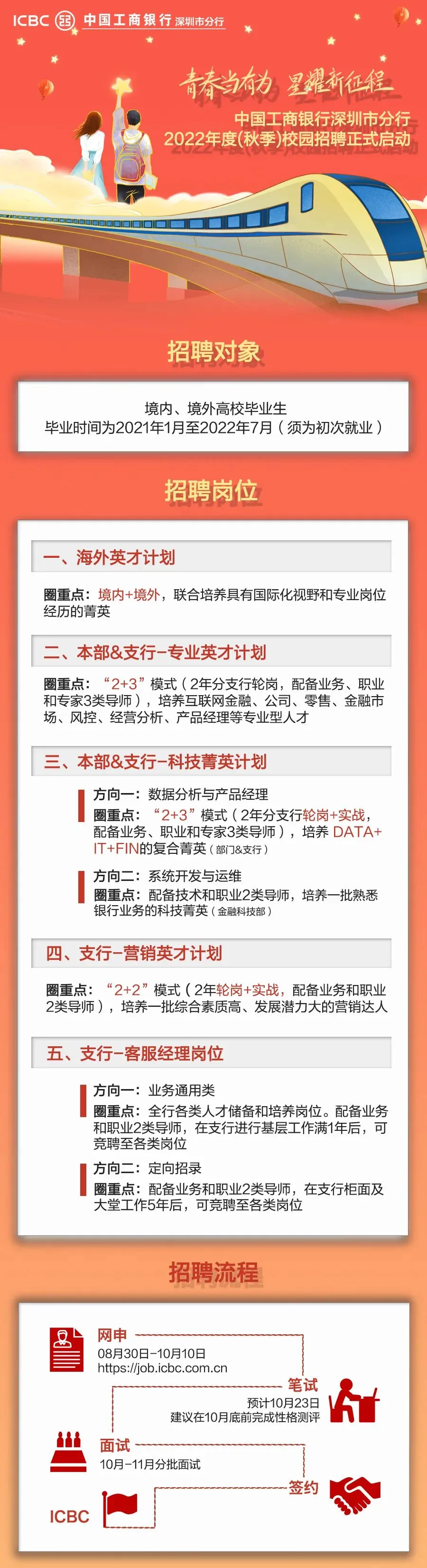 招聘 | 中国工商银行深圳市分行2022年秋季校园招聘正式启动