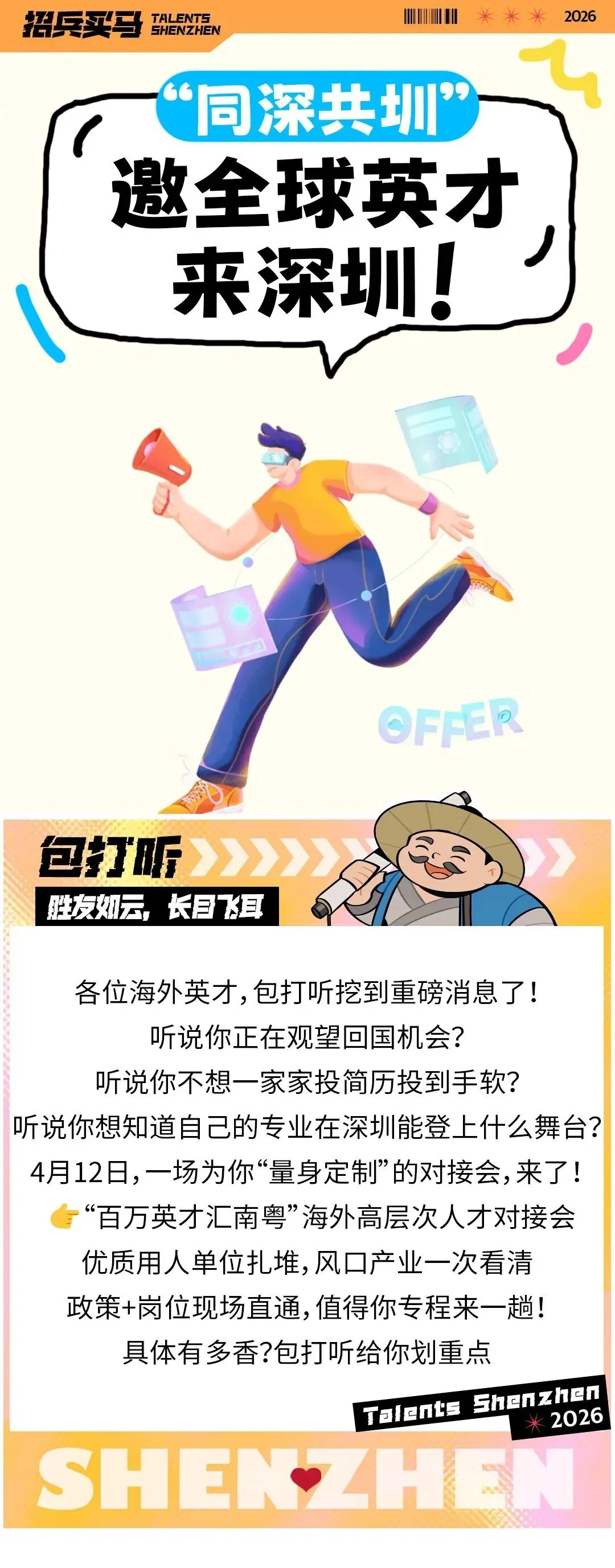 对于正在加快建设现代化国际化创新型城市的深圳而言,海外高层次人才,不仅是宝贵的人才资源,更是链接全球创新网络、汇聚前沿技术与产业机遇的重要力量。