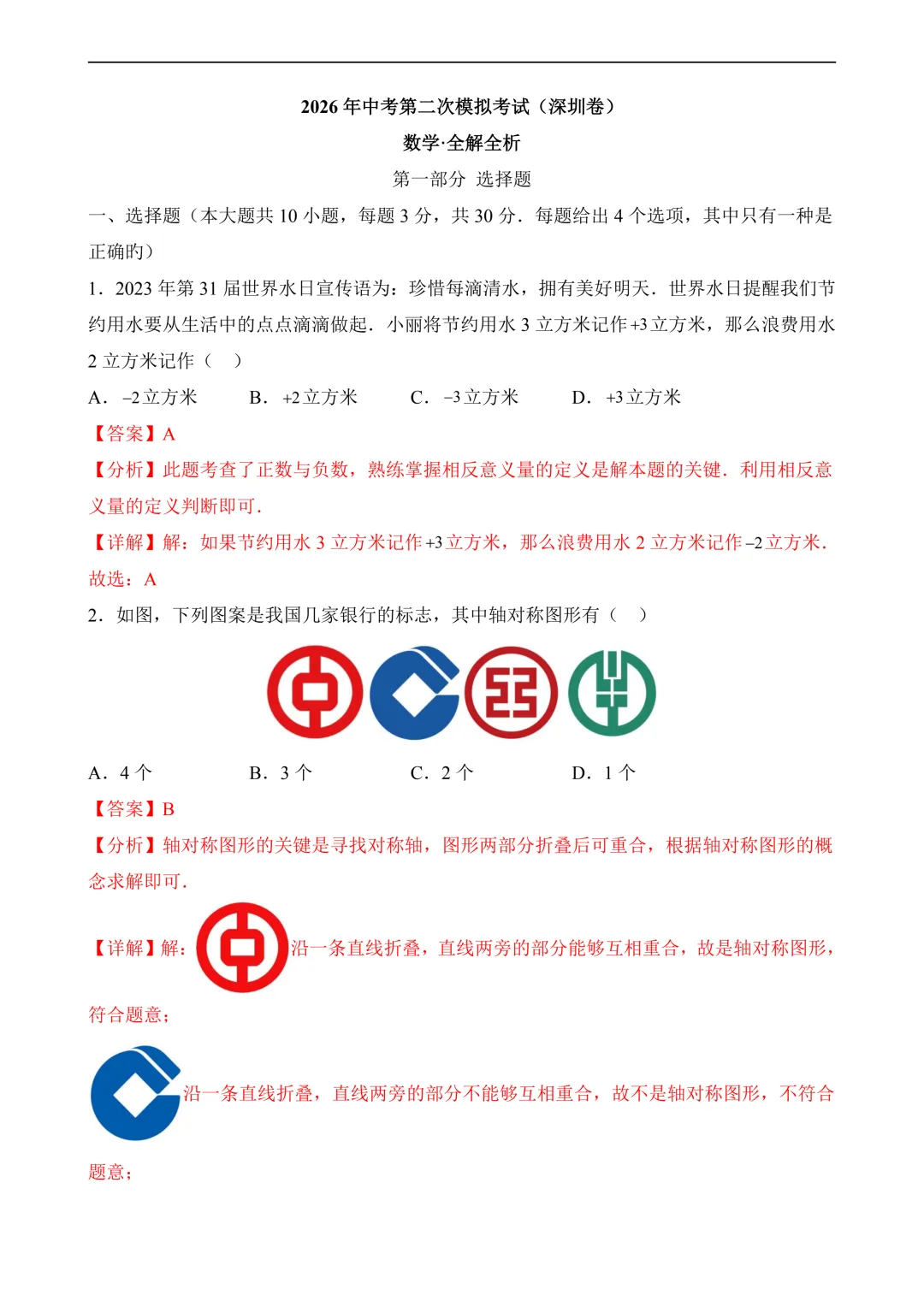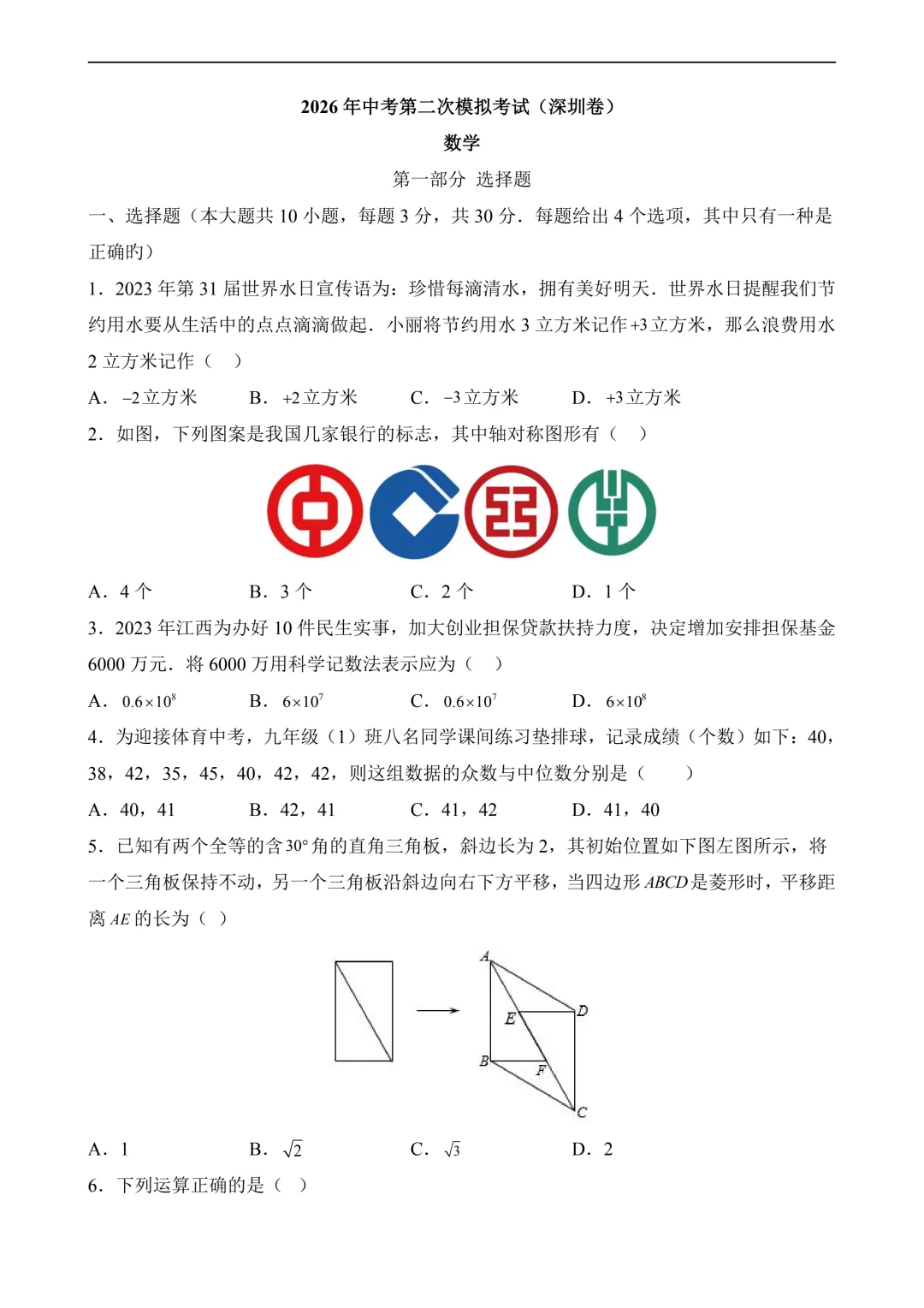 作者寄语:2026年中考第二次模拟考试数学(广东深圳卷)含解析