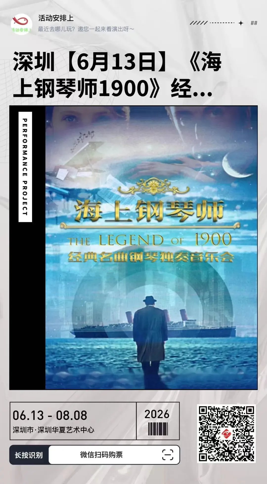 >【深圳2026.06.13】《海上钢琴师1900》经典名曲钢琴独奏音乐会