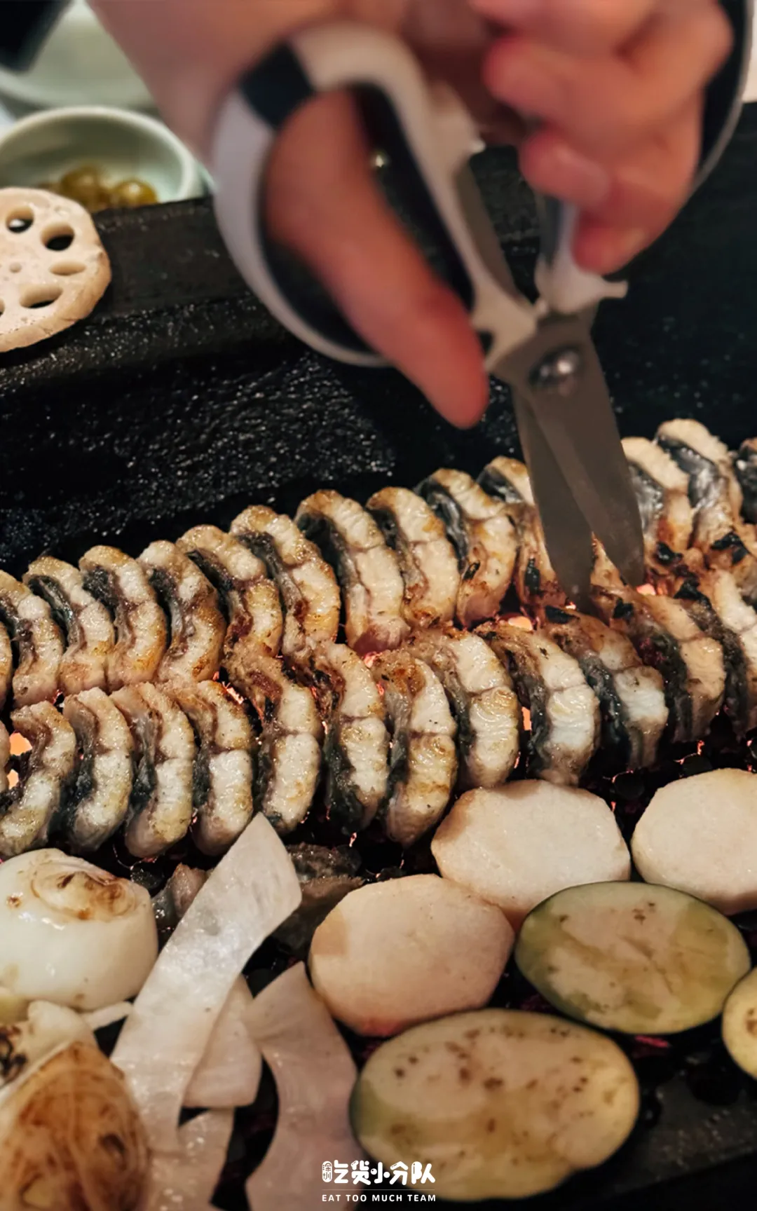 很多韩国明星都会来打卡的永冻鳗鱼,鳗鱼每日新鲜到店,有不同的品种可以选,炭炉热烤的活鳗,外脆内嫩,肉质肥厚。营业时间:11:30-次日1:00