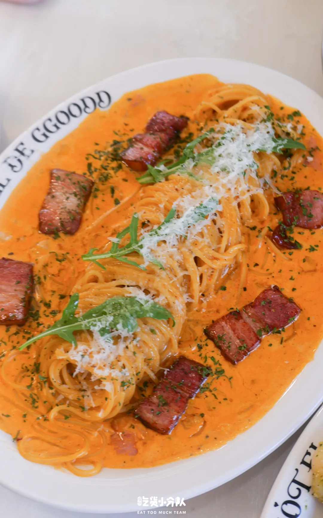 Hotel de ggoodd:每桌必点蜜蜂培根意面开在延南洞的Hotel De GGOODD,主打意大利面,店面古典华丽带有点美式的氛围。招牌的蜜蜂培根意面奶油味十分浓郁,咸甜交织的味道很特别,还带点微微的辣度。