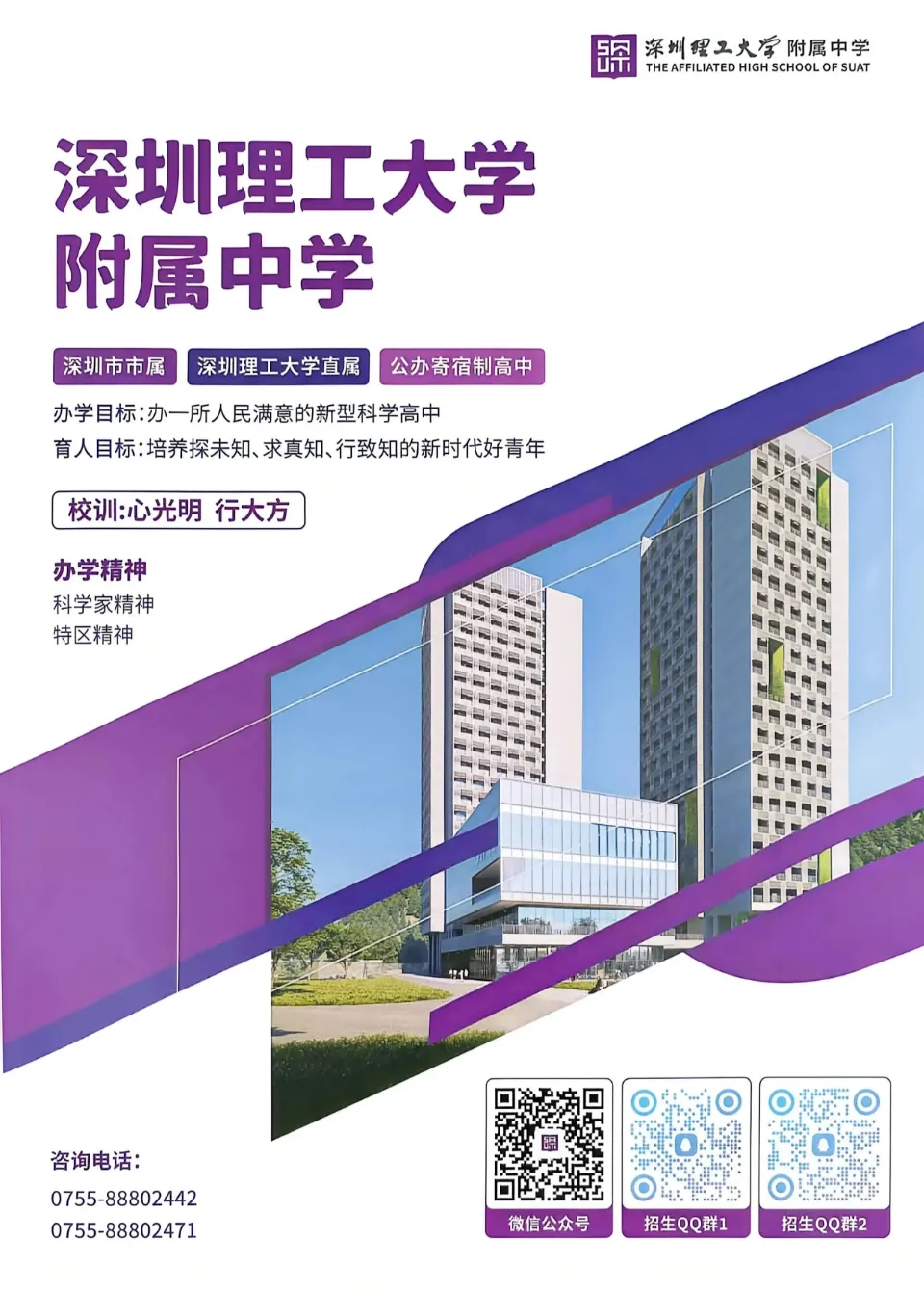 提醒:在2026中考填志愿时,深圳将有2所深圳理工大学的附属高中,一所是2021年首届招生的深圳理工大学附属实验高级中学(简称:中科附高、深圳理工附高),另一所则是2026年首届招生的深圳理工大学附属中学。初三同学和家长要注意,核对好学校和代码,避免混淆。