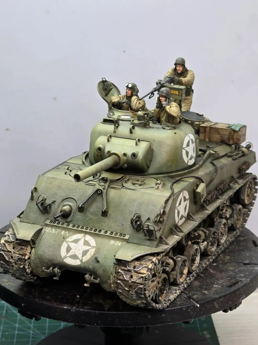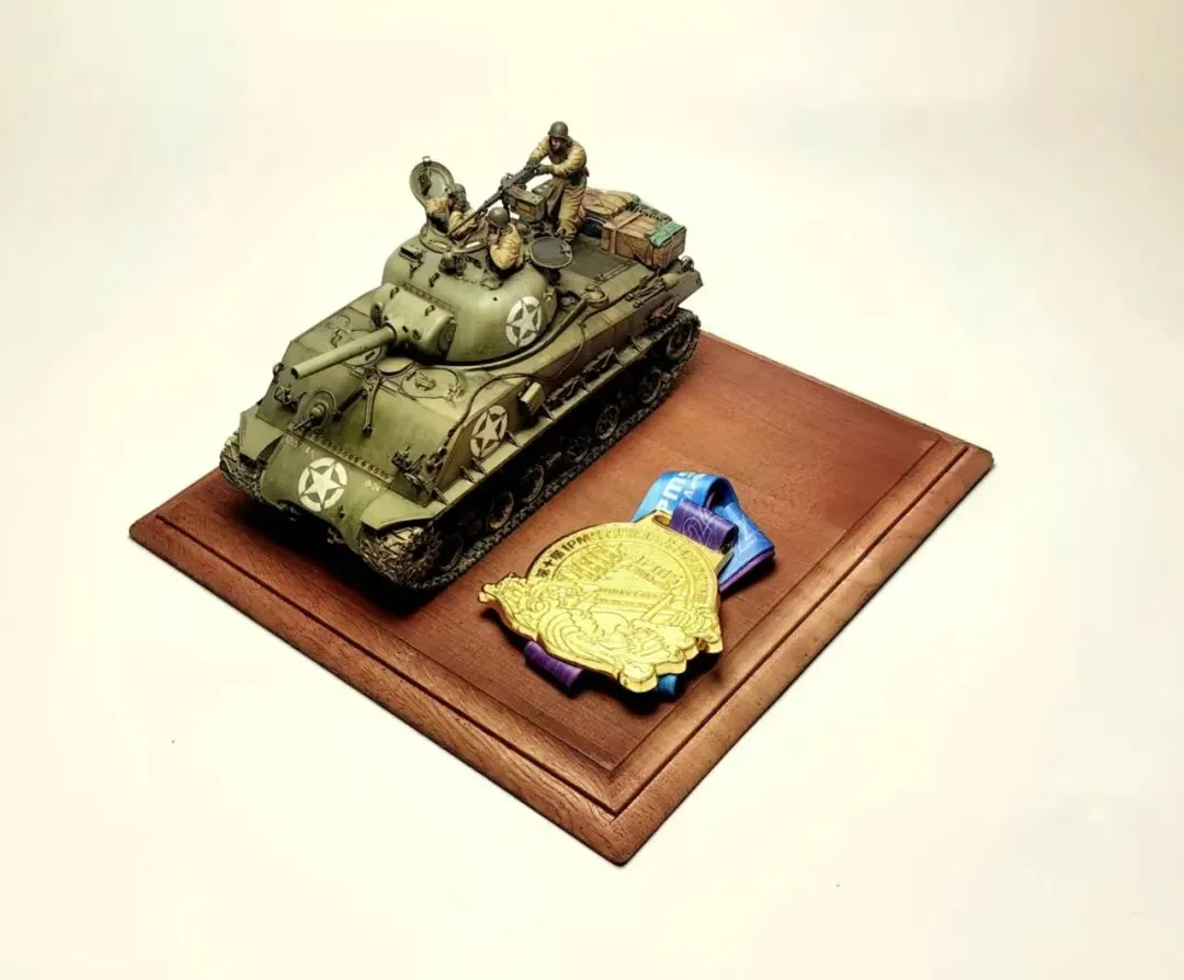 周末给大家带来的依然是深圳大叔的作品,这是大叔制作的非内构的战车,M4A3谢尔曼(105主炮)版本,车体来自于田宫的M4A3E8的车体,炮塔来自爱德美 的105mm主炮炮塔,该作品获得了2024年湖北赛战车组的一等奖。一起来欣赏。
