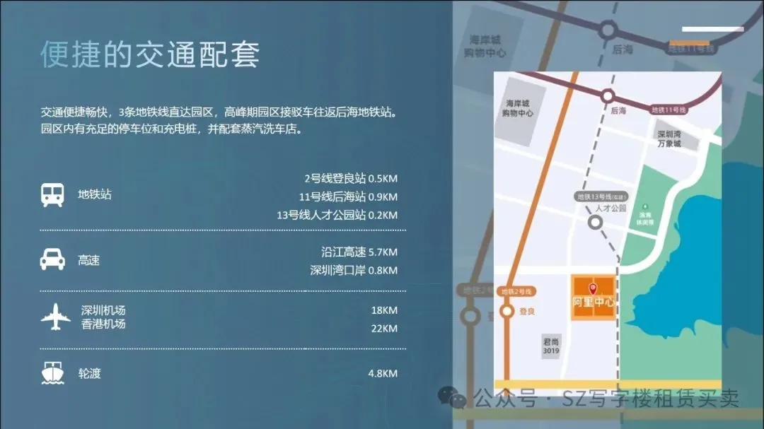 交通方便快捷,3条地铁线直达园区,高峰期园区接驳车往返后海地铁站。